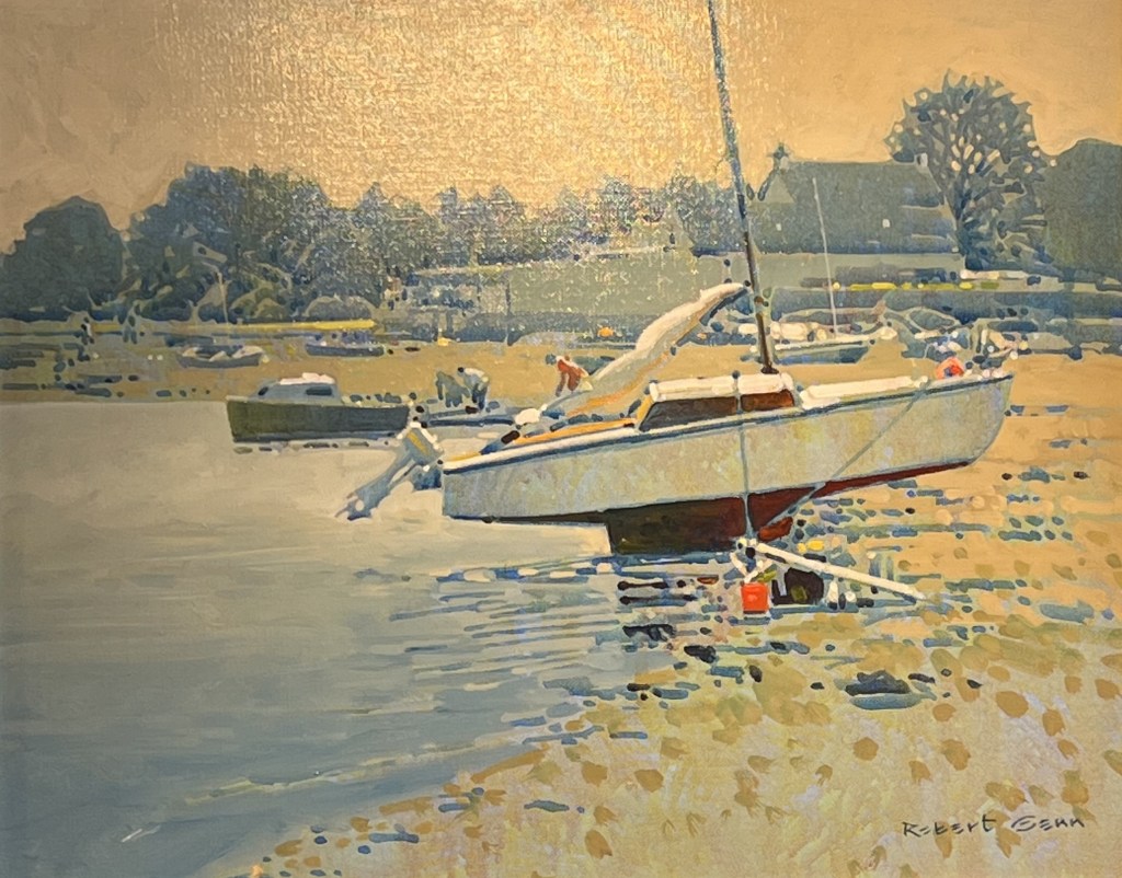 In his early work he was using mostly watercolour depicting rural and coastal scenes. Evolving he moved into larger works in acrylic on panel and canvas.